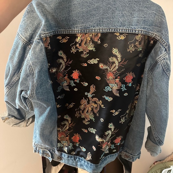 LF Stores Carmar Denim Jacket oversized with jacquard silk patern