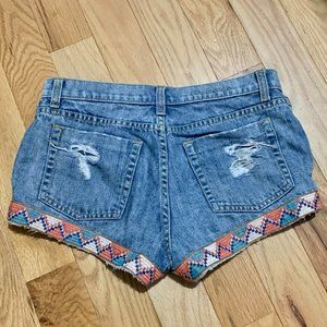 Only worn once, in perfect condition, purchased at full price over $200, this is a rare pair that the store sold out of immediately. These have very durable embroidery at the trim and many distressed details. True to size! They are a 28 in waist are too big for me. My loss is your gain bc they are so cute.
