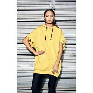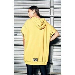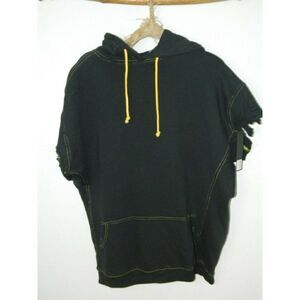 LF Sweatshirt Hoodie Black with Yellow Trim Oversize Kangaroo Pocket Pullover Ripped Sleeves Size Small