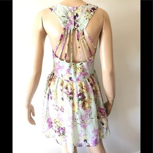 Beautiful floral top caged back button down. Perfect for summer! Last button loop has come undone but you can’t tell. LF Millau lavender mint buttercream Cottage Core Boho chic faeriecore farmcore naturecore. Very Katie Holmes Kate Middleton January Jones Selena Gomez Meghan Markle Gwyneth Paltrow Rashida Jones Reese Witherspoon Taylor Swift Princess Diana