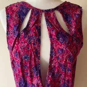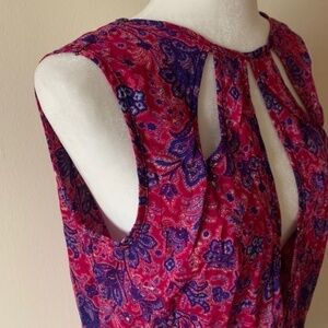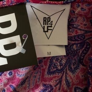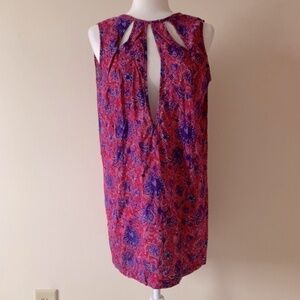 LF The Brand RP4LF shift dress. Front cut outs. Sleeveless. Open back. Pink, purple, and blue paisley floral print. Custom made from a mix of new and used materials. Size medium. New with tags. Made in the United Kingdom.