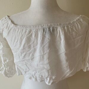 LF Brand Call Me Eden off the shoulder crop top. Half length, ruffled sleeves. Elastic at top of bodice and end of sleeves. Size medium. New with tags.