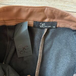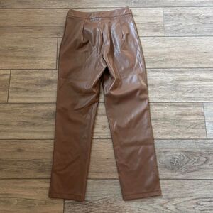 faux leather, high rise, tapered fit, earthy brown, trendy style, new with tags, minimalist, sleek, versatile, streetwear