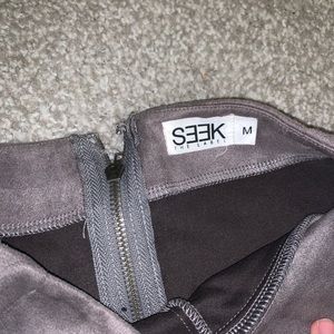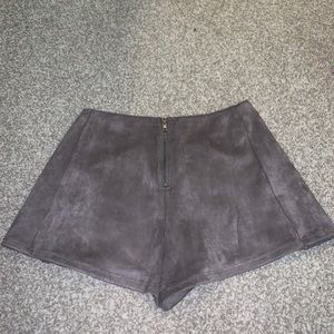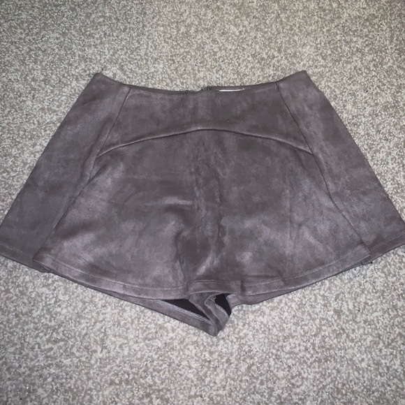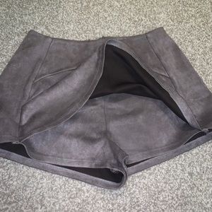 Shorts in back, skirt in front, high waisted, suede gray material, only worn a few times