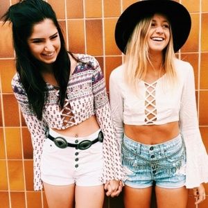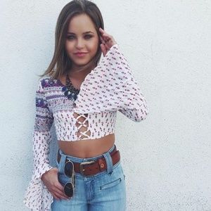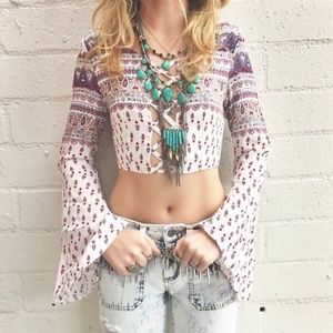 LF stores Boho Bell sleeve criss cross zip up crop