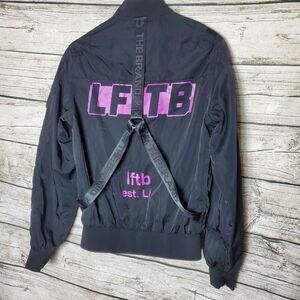 LF the Brand Biker Style Utility Logo Jacket Size XS Black Purple Straps