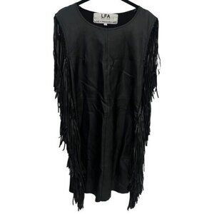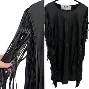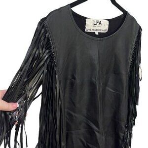 LFA New York Black Faux Leather And Knit Fringe Dress Costume Gothic Grunge 8
