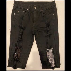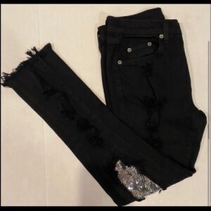LF Carmar Black Denim Slim Fit Distressed Silver Sequin Jeans