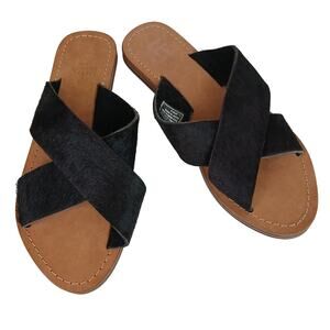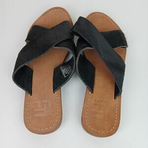 LFL LF/Life SZ 8 Mira Black Pony Leather Slide Sandal