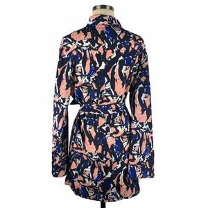 LFV BY LA FEE VERTE Multi Color Abstract Print Wrap Blouse Long Sleeve Size Med