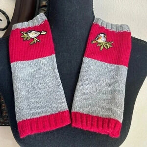 Unbranded soft knit hand warmers with a robin and chickadee on each warmer. Size: OS NWOT Have never been worn!! (No care tag)
