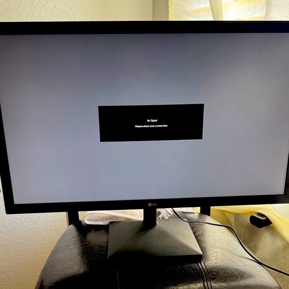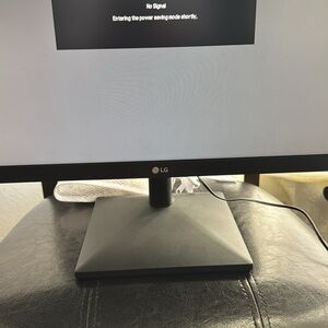 Stylish LG monitor with a sleek black frame. Ideal for any workspace.