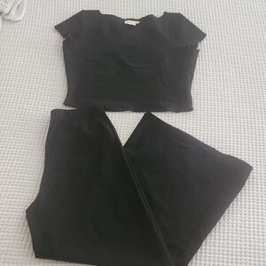 Discover the elegance of GLG's black wide-leg pants set, crafted with a structured fabric that maintains a polished silhouette. These versatile pieces offer a flowing design perfect for both business and formal occasions, ensuring a sophisticated look with every wear.