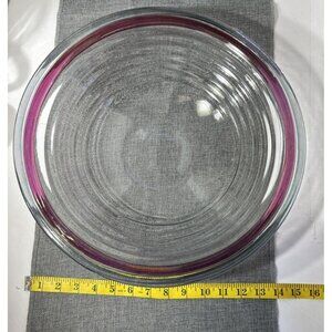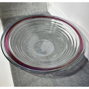 LG Eggplant & Blue Color Rimmed 1990s Multi Tiered Edged Glass Serving Bowl 15"