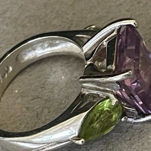 LG Rose de France Amethyst & Peridot Cocktail Ring a Heavy Sterling Silver Ring