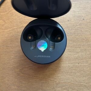 Both earbuds have built-in microphone, speaker, and touchpad (answer calls, change volume, play/pause, skip song, and switch from noise cancellation to ambient noise). Connect with app to change touchpad settings, find my earbuds, check battery, and more. Google & Siri voice command compatible. Meridian Audio Technology for a rich, clear sound.