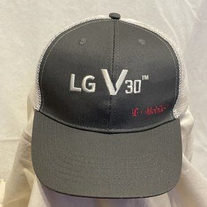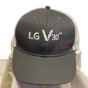 LG V30 T Mobile Promotional Advertiser Ball Cap Trucker Hat Gray W/ White Mesh