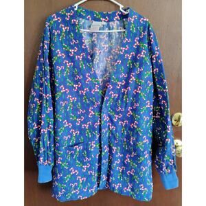 LG Women's Candy Cane Scrubs Coat. Buttoned Up With Pockets. Christmas. Holiday.