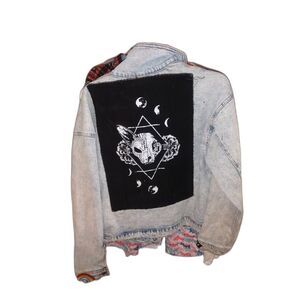 LGBT Nonbinary Cat Skull LoftyDogDesigns Patch Witchy Punk Jean Jacket Flaws