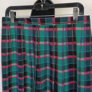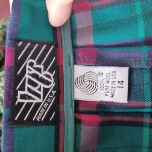 LGR women’s green & pink plaid pleated maxiskirt wool us 14, like new condition