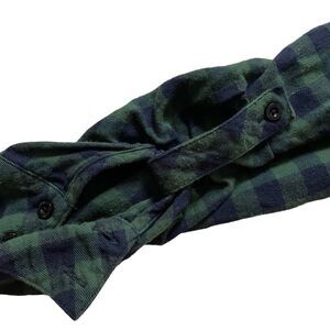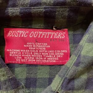 LG rustic outfitters green and blue plaid button up shirt. With adjustable sleeves. Very cute, will keep you cozy this fall. All buttons accounted for. No defects noted