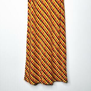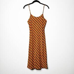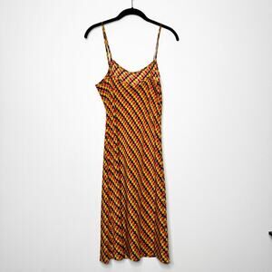 LHD Silk Slip Mini Dress in Retro Orange Brown Plaid Print Size US 6