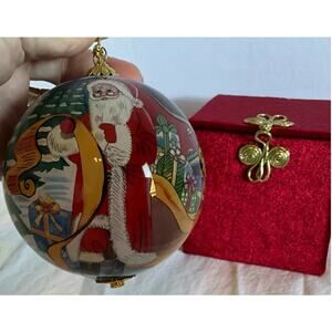 Add a touch of timeless charm to your Christmas tree with this exquisite Li Bien hand-painted ornament from 2004. This ornament comes complete with its original box and paperwork, including the North Pole Santa reading Naughty & Nice List. It's a delightful piece that captures the spirit of the holiday season. Get ready to enhance your holiday collection with this treasure!