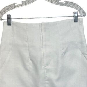 This high-waisted mini skirt offers a polished and tailored look, featuring a sleek design with subtle pockets. Its versatile white tone complements professional wardrobes.