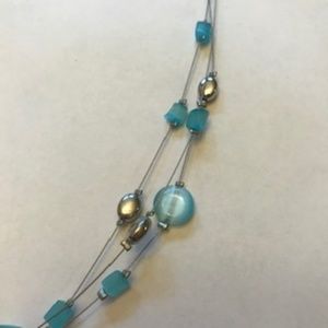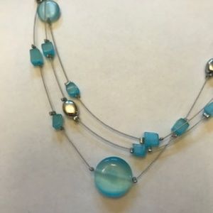 Triple wire necklace. Blue with silver accent beads. Adjustable 16"-19".