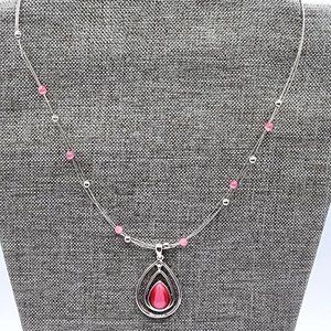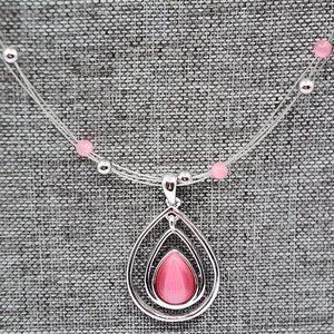 LIA SOPHIA COTTON CANDY Silver Pink Teardrop Floating Bead Signed Necklace