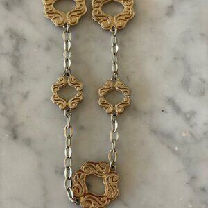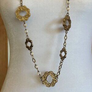 LIA SOPHIA Gold Tone Etched Link Long Necklace Vintage Retired