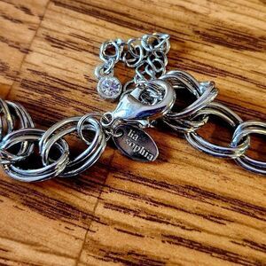 Special Features: Pyramid Shape with Black Super Shiny Faceted Stones, Set in Silver Plate, Pretty Silver Double Link Chain, lobster claw clasp, extension, Lia Sophia and Crystal Charms at nape. Make a Beautiful Statement 💃