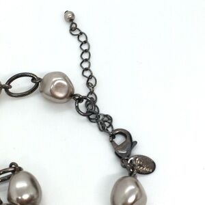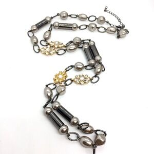 LIA SOPHIA LONG NECKLACE WITH GOLD RHINESTONE PEARL STATIONS GUNMETAL 36” LONG