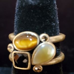 Brown and Amber stones double ring