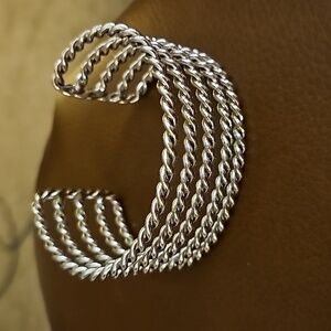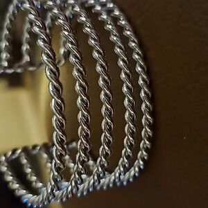 LIA SOPHIA Silvertone Wind Up Twisted Castlecore Wide Cuff Bracelet