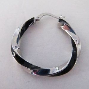 LIA SOPHIA "TWIST & SHOUT" HOOP PIERCED EARRINGS SILVERTONE AND BLACK NEW RV$32