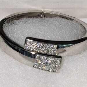 LIA SOPHIA Women's Hinged Rhinestones Bangle Bracelet 7" Silvertone