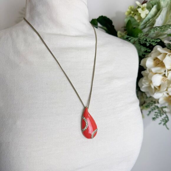 LIA SOPHIA necklace | coral gold rhinestone pendant | Kiam Family