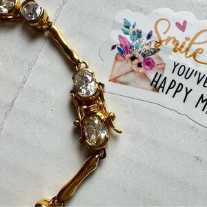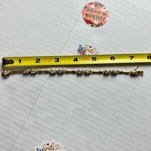 Lia Sophia Gold tone bracelet with 10 beautiful cz stones. 2 safety hooks. Won at a Lia Sophia show and didn't end up wearing this. Style number 1030L7501. I still have it in the box with foam packaging! I did write on the box (see pic) to try and remind myself to wear it!
