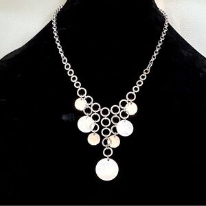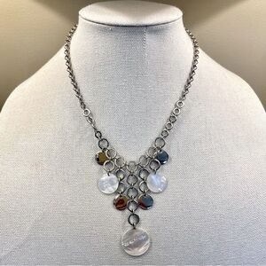 LIA Sophia SILVER TONE STATEMENT Pearlized & Silver Tone Disk Necklace