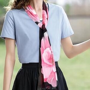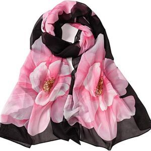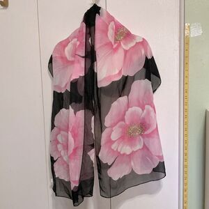 LIANG DESIGN Black with Pink Flowers Lightweight Scarf Wrap 60 x 19 inches