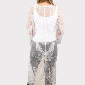 LIB Ivory Lace Duster Kimono Butterfly Embroidered One Size NWT