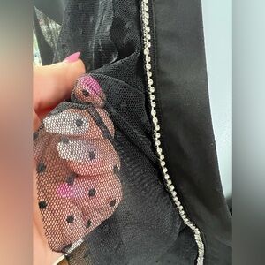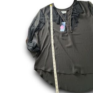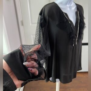 LIBBY Edelman Black Rhinestone V-Neck Sheer Long Sleeve Formal Top Size XXL NWT