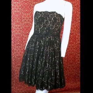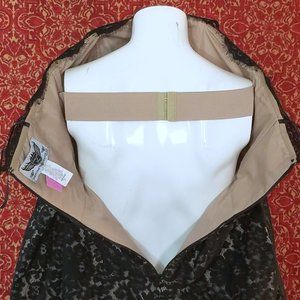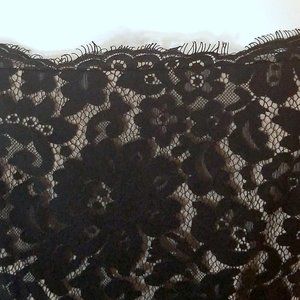 Excellent Condition - thin, textured lace - on soft side. Skirt has crinoline for poof. Elastic across back and rubber across top for better "stay up"