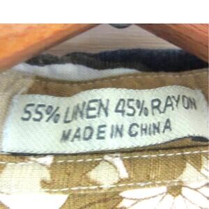 LIBERTAD Tropical Hawaiian Print Linen Blend Short Sleeve Button Down Shirt