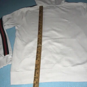 Libertador hooded sweatshirt with dark green and red stripes on long sleeves. Thick drawstrings. Gucci vibes!