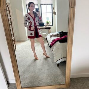 Playful and whimsical and sooooo comfy!!!! I am so in love w this but gaining weight and this needs to more on a sooser side. For reference, i am 5.3’’ size medium and this is more of a small. Super great condition