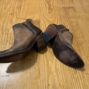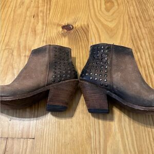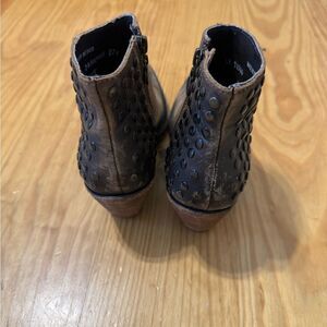 Liberty Black brown leather distressed and brass studded western ankle booties.