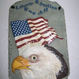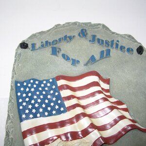 "LIBERTY & JUSTICE FOR ALL" SLATE Hanging PLAQUE Wall SIGN ~ Eagle & Flag 13"x8"