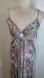 Keyhole front, adjustable spaghetti straps. Tired ruffle hem. Easy and light to wear slips on.